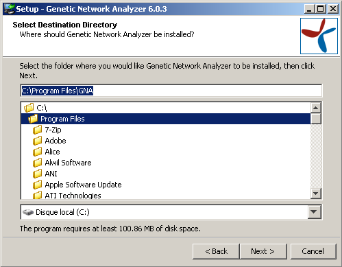 At this stage, you must choose the directory in which GNA will be